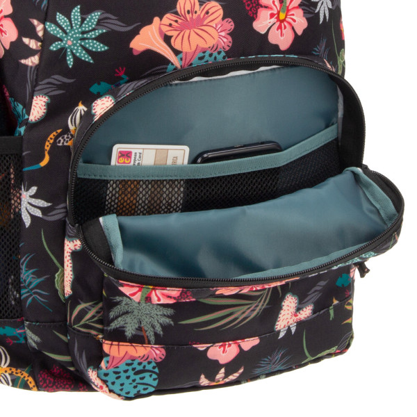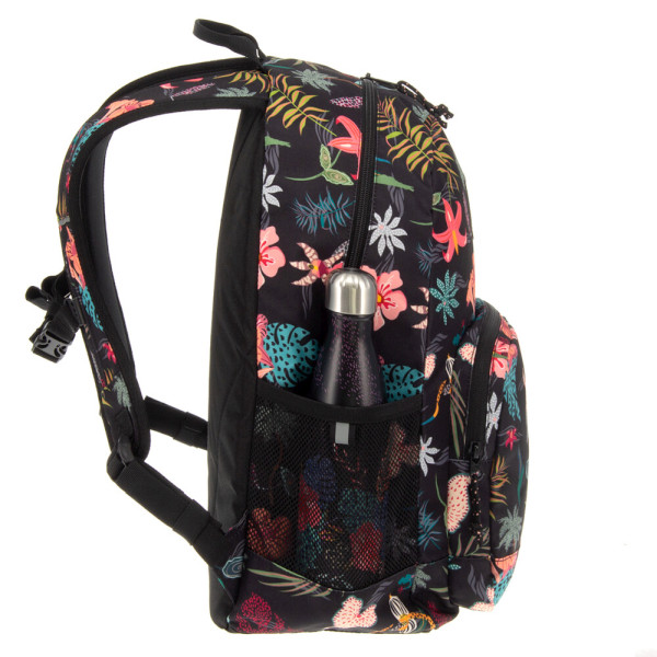 A fekete egzotikus virágokkal díszített iskolatáskát felsősöknek tervezték. A nagy méretű erős anyagú táska alkalmas tinédzsereknek iskolatáskának, illetve kirándulós hátizsáknak.